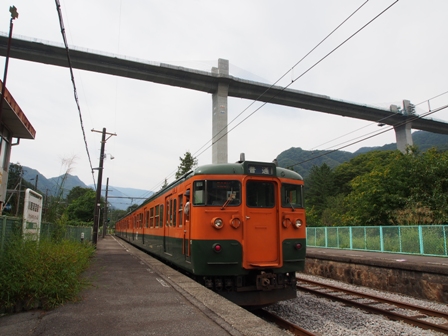 115系のモータ音を楽しみつつ進む。渋川で上越線と分岐する。