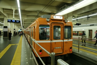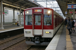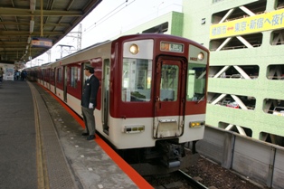 到着した特急大阪難波行は8連。前4両が22000系なのでちょっと期待。