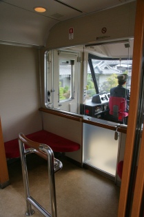 吉野口。JR和歌山線と接続する。JR線で通ったことは何度かあるのだ。確か、一応だけどレールは繋がってるんじゃなかったっけ。…つながってなかった。気のせいか。さくらライナー26000系は運転台後ろにかぶりつきスペースがある。座席まで設置してくれるサービス精神が嬉しいね。
