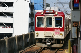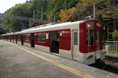 0940の特急吉野行はさくらライナー。桜色の帯をまとったリニューアル車両だ。いいね。
