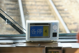 この電車は2連のワンマン列車だ。この電車は表示幕にワンマンって入ってないね。その代わり電照式のワンマン表示がある。