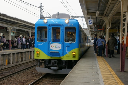 駅前のお好み焼き屋さんで遅い昼食。伊勢うどんがあったのでいただく。この食感はなんとも。駅長的には好みである。さて、1515発の観光列車つどいに乗るのだ。10月から走り始めたばかりの列車だ。既存の車両を改造している。