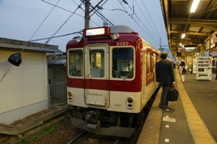 昼に乗車した大阪線の急行と、座席モケットが違う。こっちはグレー、あっちはワインレッドだ。あちらがリニューアルされたものでこちらが原型らしい。