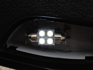 PIAAのライセンスランプはなんだこれ、4つのうち2つしか点灯してないっぽい。固定してみたけどさてどうだろう。これが無駄遣いになる可能性が高そうだ。まあ、基盤から出た線がT10コネクタに直結しているだけっぽいので、粉砕覚悟で面発光タイプのLED基盤を押し込んでみるという遊びは出来そうである。