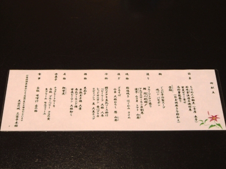 メニュー。