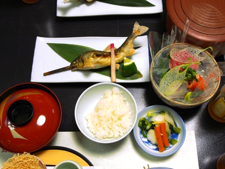 展望風呂は相変わらずいいね。柔らかいお湯もいい感じ。1900夕食。