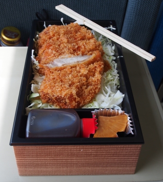 フィッシュアイレンズでのぞみ200号を撮影してから、朝食のサンドイッチを調達して乗り込む。座席は12号車の一番いい席、じゃなかった1番E席。