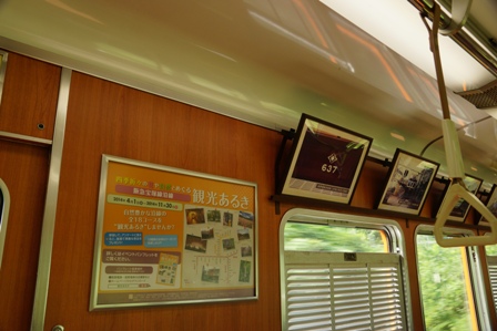 今度は日生中央の折り返しに充当されている旧50形復刻塗装を撮影する。こちらは1530Fだ。車内の仕様はおおむね共通っぽいな。