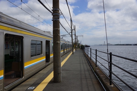 さて、時間を図ったかのように(事実図ったのだが)、次の鶴見発は海芝浦行だ。浅野で分岐する支線である。大川ほどではないがこちらも昼間は2時間に1本しか電車が来ない。狙いすまして乗車する必要がある。