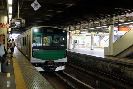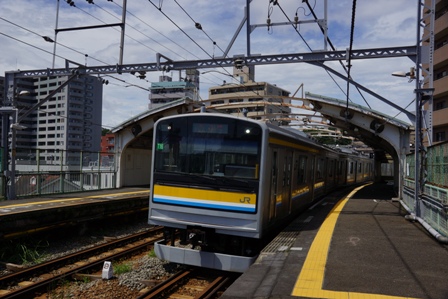 いきなり東芝私有地の看板が立っていて焦るが、人が歩く分には問題ないようだ。さっき乗車した時に当たりをつけた場所でのんびり電車を待つ。9月になっても暑いは暑いな。ま、薄ら寒いよりいいだろう。
