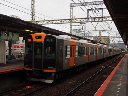 やってきた神戸三宮行快速急行に乗る。阪神1000系だ。隣に先に入ってきた区間準急尼崎行も阪神1000系でここどこー(逝)