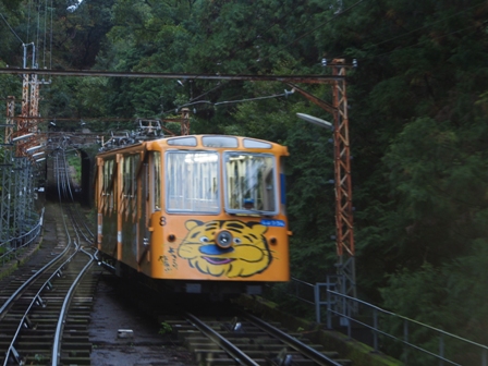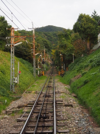 あ、ケーブルの山側に貨車が連結されてる。wikipediaによると水を運ぶことが多いようだ。これはおもしろい。