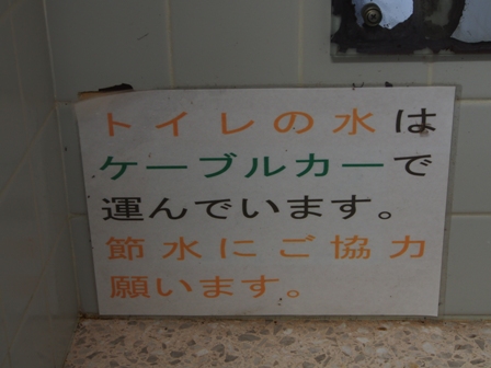 トイレに入る。水はケーブルカーで運んでいることをちゃんと書いていた。確かに効率悪いから節水しないとね。