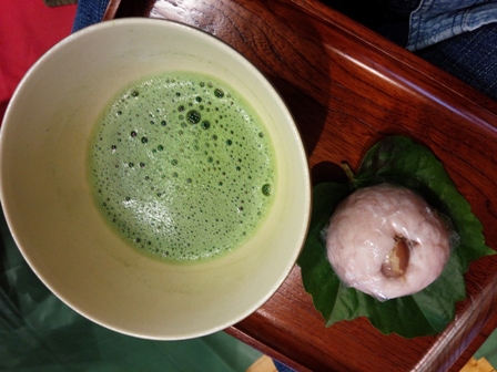 お抹茶と赤飯万十をごちそうになった。感謝。