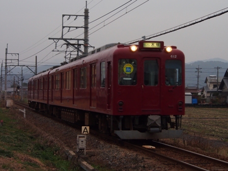その前に揖斐行の電車を撮影。感度を上げたのでなんとかなった。