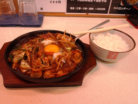 ラッキー。トンテキの上りを立てた店が開いてる。近づいてみたらお好み焼きとかいろいろ出している店みたい。トンテキ胃になりつつあったけどホルモン味噌野菜いために宗旨変え。