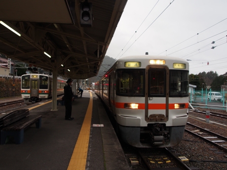 またさらに寝る。目が覚めたら丹生川の手前。1時間近く寝てた計算だ。車窓左手、海は晴れ。車窓右手、山は曇り。なんだこれ。変な天気だなあ。
