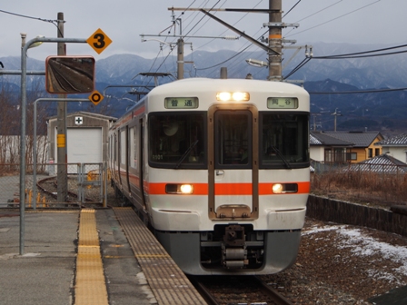 1103の221Mで出発だ。車両は3番線に留置されていた313系3000番台。