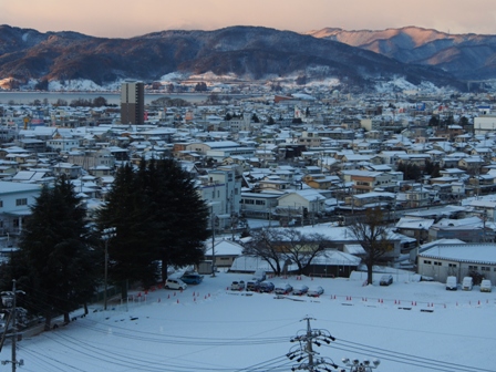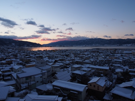 まるで長野以北の信越本線の車窓みたいだ。そういえば龍峡亭の仲居さんが諏訪はすごい雪って言ってたっけ。
