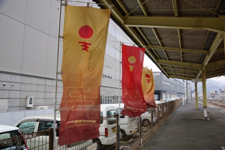 駅員氏のほかヘルメットをかぶった作業員氏も現れてそれこそ手の空いているもの、的な感じ。ところで、伊予灘ものがたりの乗車口に敷かれたフロアマットは、お見送りをした職員氏が片付けていたので、各停車駅に用意されているということになる。