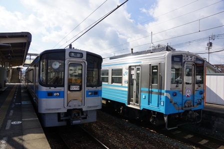 伊予北で下り伊予灘ものがたり八幡浜編と、下り普通と交換。