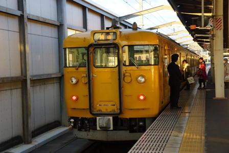 乗り換えるのは児島1654の544Mだ。待っているのは213系かと思ったら真っ黄色の115系だった。まあこれはこれで当然ありである。