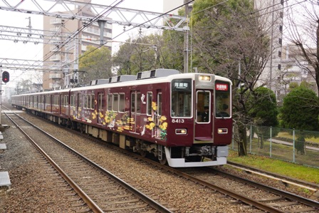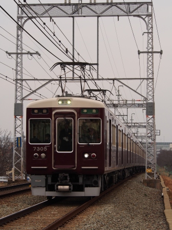 かん高いインバータ音は今までの阪急車のものではないな。また最近の控えめなインバータ音とも違う。うとうとしていたらなんか急制動?