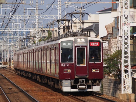 十三で京都線特急に乗り換え。かぶりついて運用を確認。