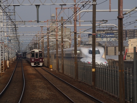 十三で京都線に乗り換え。取り敢えずやって来た特急に乗り込む。66系のリニューアル車が東吹田検車場の中にいるのを発見。少なくとも高槻市以西ででこれを狙う作戦は立てるだけ無駄だ。