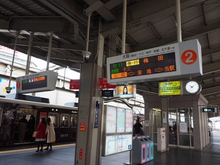 やって来た急行で十三まで。
