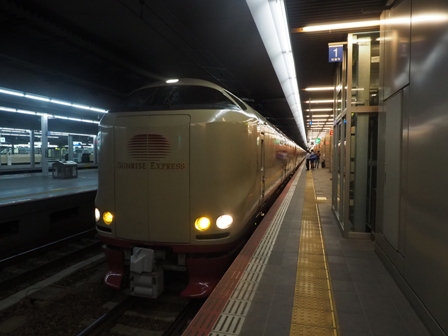 サンライズ瀬戸・出雲、今日は定刻かと思いきや2分ほど遅れての到着となった。まあ、問題ないだろう。