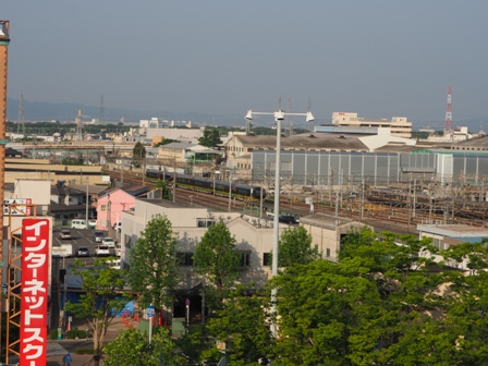 窓を開けると猿軍団、右手に新前橋駅。その向こうには電車区だ。入れ替えをしてレールが歌うのが聞こえてくる。それもほどほどの音量だ。ここ、いいかも。