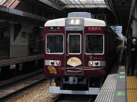 折り返しで古都のヘッドマークのまま河原町行の快速特急となったものも撮影する。