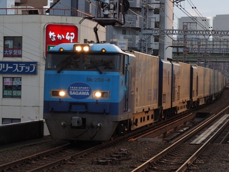 0522、おそらく定刻でスーパーレールカーゴが通過。いいね。なか卯じゃま(逝)