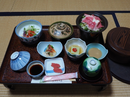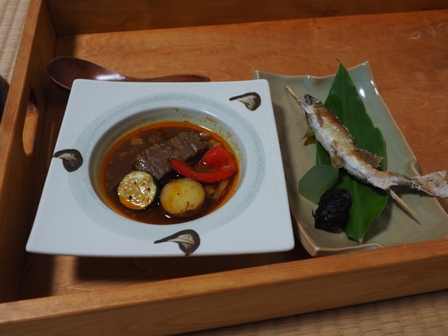 デザートに加子母で調達したわらびもち。うまーい。夜はちょっとぐるぐるして終わり。