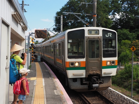 並んでたらやって来たのは2ドアの213系でとんだ大恥をかいてしまった(逝)駅長が座席を確保したころ、あっぱく氏と文市一家の登場。お久しぶりでござる。