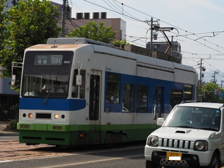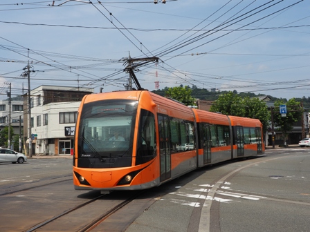 木田四ッ辻から田原町まで乗車しようと電停で待っていたら、復刻塗装の200形がやってきた!こっちも走ってたか!乗車できるなんてラッキー。