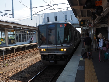 普通京都行は207系のリニューアル車。外からだとよく判らないけど、車内には321系と同じようなモニタがあって見分けがつく。