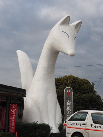 湯田温泉駅前の白狐。