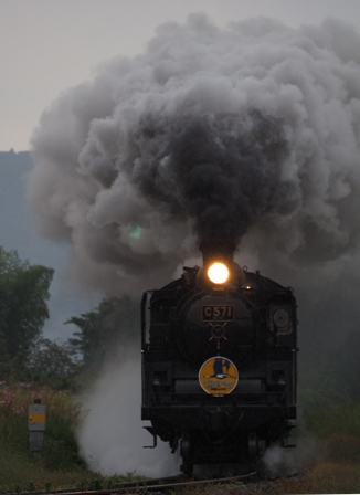 雨の中煙を上げて来た列車にシャッターを切った。
