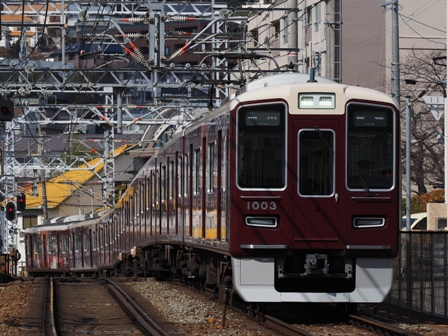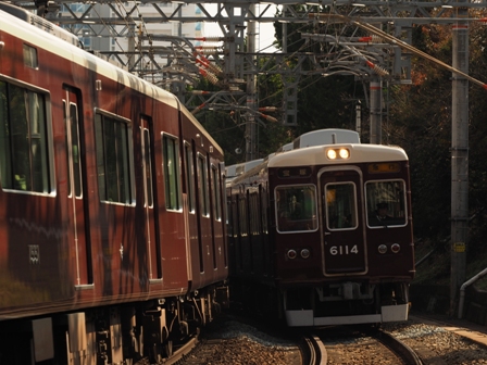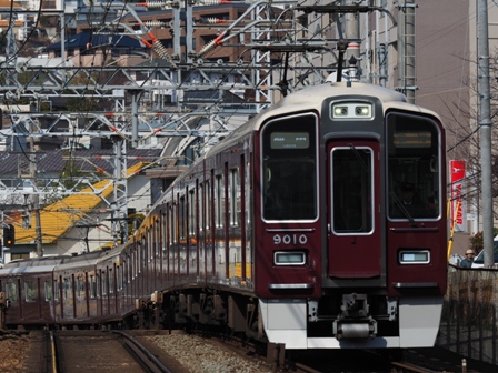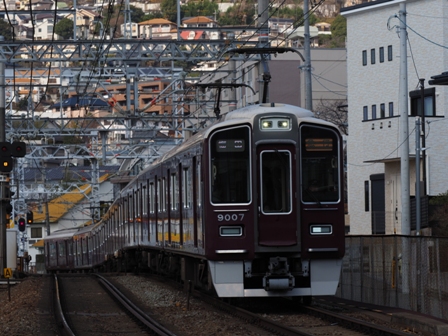 ぽくぽく10分ほど歩いて銭屋踏切へ0950ごろ到着。午前中が順光になる宝塚線の定番お立ち台だ。一度ここへ来てみたかったのだよね。