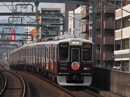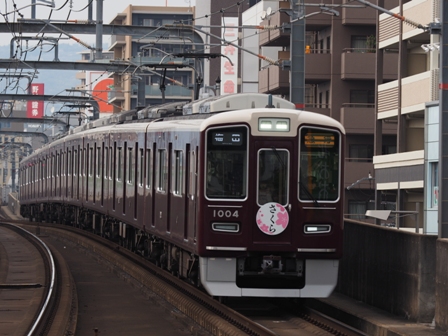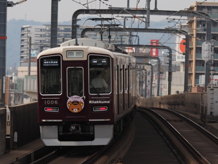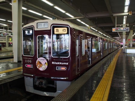 やってきた1008Fさくらの阪急電車リラックマ号で西へ向かう。