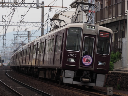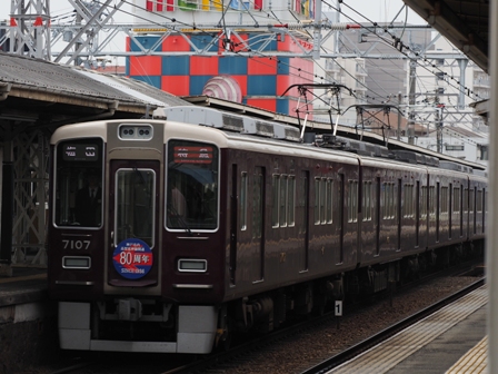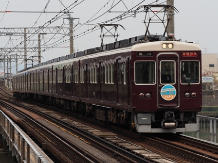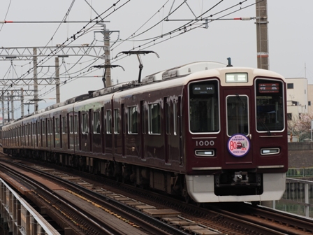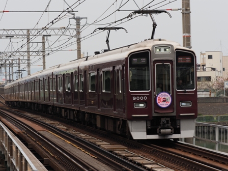 本日のターゲットは神戸線の直通特急。その他もろもろ。久しぶりだしね。と、いきなり神戸市内高架線開通80周年記念のヘッドマーク付の9000Fが(逝)