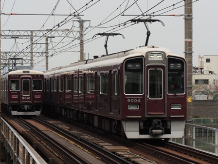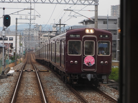 本日が桜花賞の日ということもあり今津線自体混雑しているのだけど撮れるのなら。というわけでかぶりつきで進んだら小林ですれ違った。