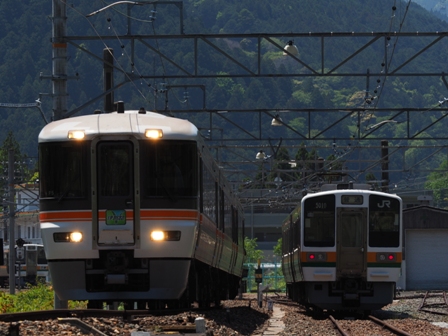 4連で中部天竜へやってきて夜間留置されていた編成が分割されている。2連は上り豊橋行。もう2連は飯田行だ。