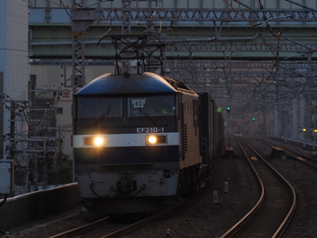 そもそもここで撮ったスーパーレールカーゴのせいで明るいレンズが欲しい!となったのだ。責任とってくれなきゃ許さないんだから(逝)予定どおり、1本前のコンテナ貨物から撮影できた。今日はEF210-1だな。