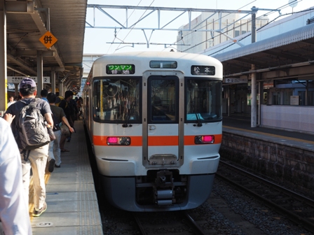 中津川から先、座れないかなあ。0735中津川着。1827Mに乗り換え。313系2連だ。