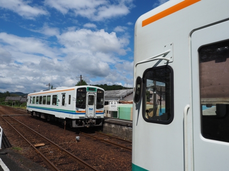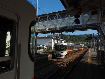 で、5000円札の両替が出来ないかと運転士氏からアナウンス。どうせカードで降りようとしたんだろう。そこら中に中津川から先はカード使えないって張り紙してあるのにねー。というわけで遅れ発生(逝)十二兼で上り普通と交換。こちらが停車すると同時に入線してきたよ。211系だった。定刻なら入線を撮影出来たのに。