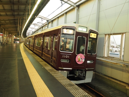 あ、スヌーピー&フレンズ号だ。宝塚線は1001Fか。となると神戸線は1000F、京都線は1300Fではないかと推測するがどうだろう。次の急行でやってくるはずなので豊中駅で待ち受ける。