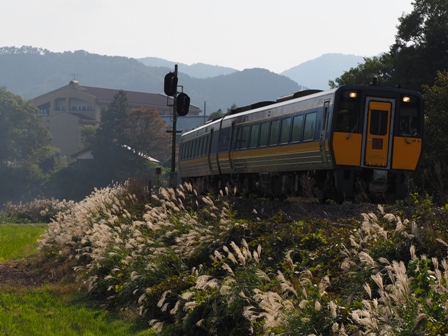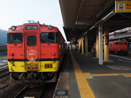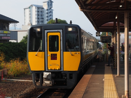 0800発の2537Dに乗り換え。こちらはワンマンだ。キハ402連でJリーグの応援ラッピング車が連なっていた。